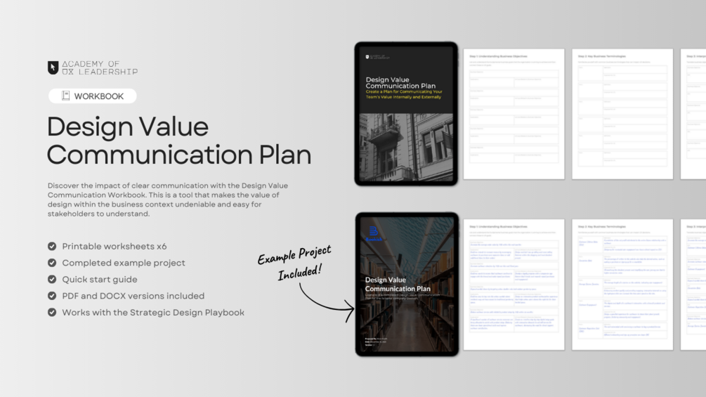 Within its pages, you'll find a simple guide, worksheets and real-world examples that demystify the communication process. It’s tailored for UX professionals ready to showcase the business impact of their design work confidently.
